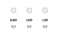 The weight of a diamond is expressed in carats. One carat is equivalent to 200 milligrams. For round-cut diamonds, a 1-carat diamond is approximately 6.5mm in diameter, while a 2-carat diamond is approximately 8.2mm in diameter.
